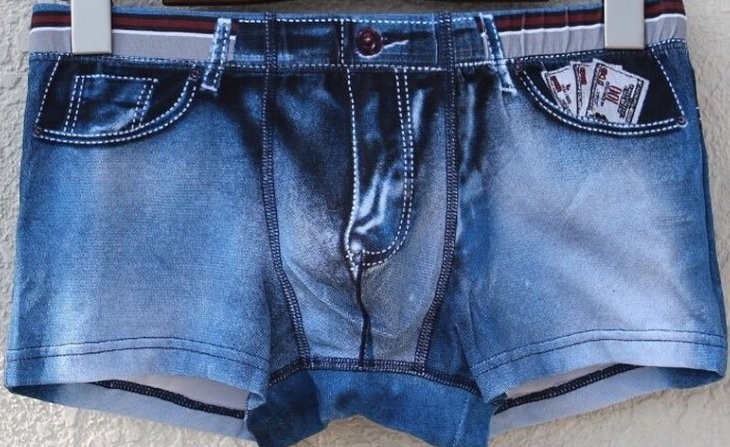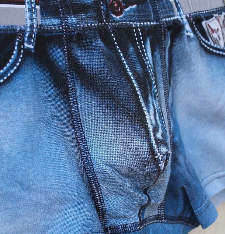 Be stylish with these men's boxers designed like denim shorts, complete with a belt and $100 bills in the pockets.
