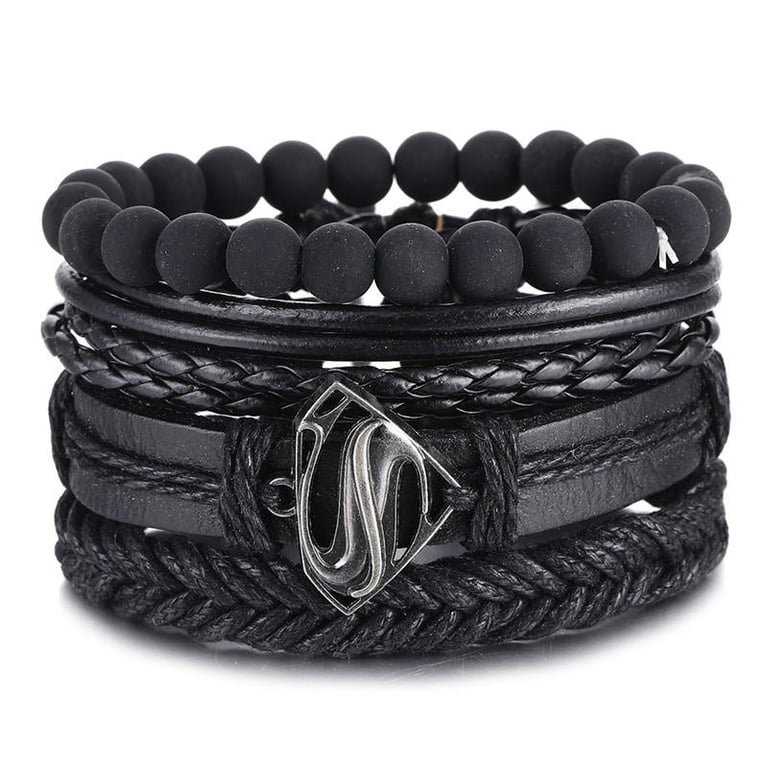 Men's leather bracelet, made from synthetic leather. This is a set of bracelets that are intact, complemented with jewellery components.
