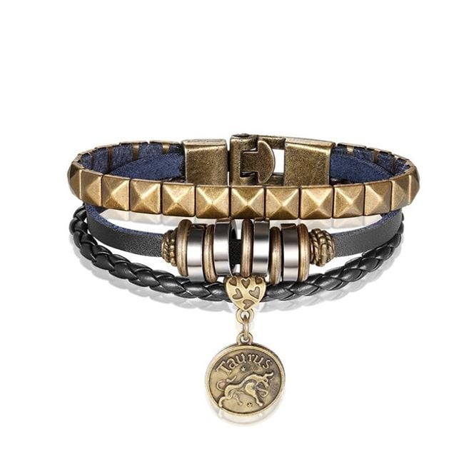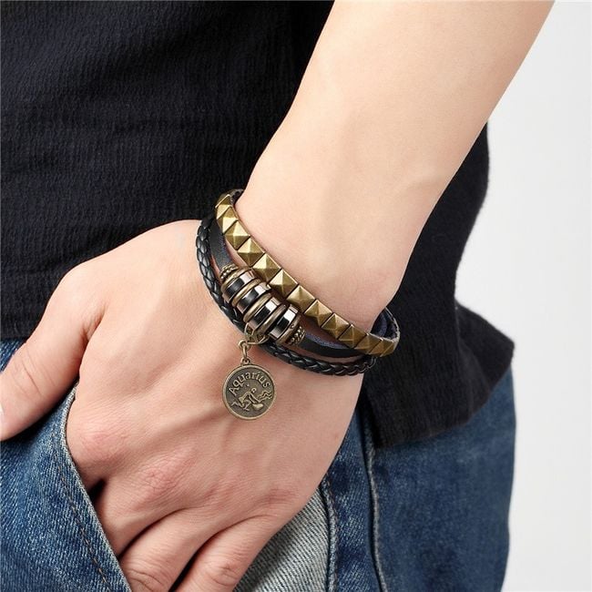 The bracelet is adorned with a zodiac sign charm and will delight any man.