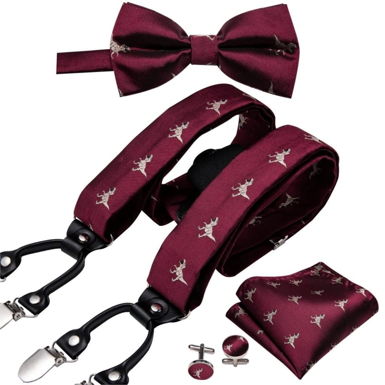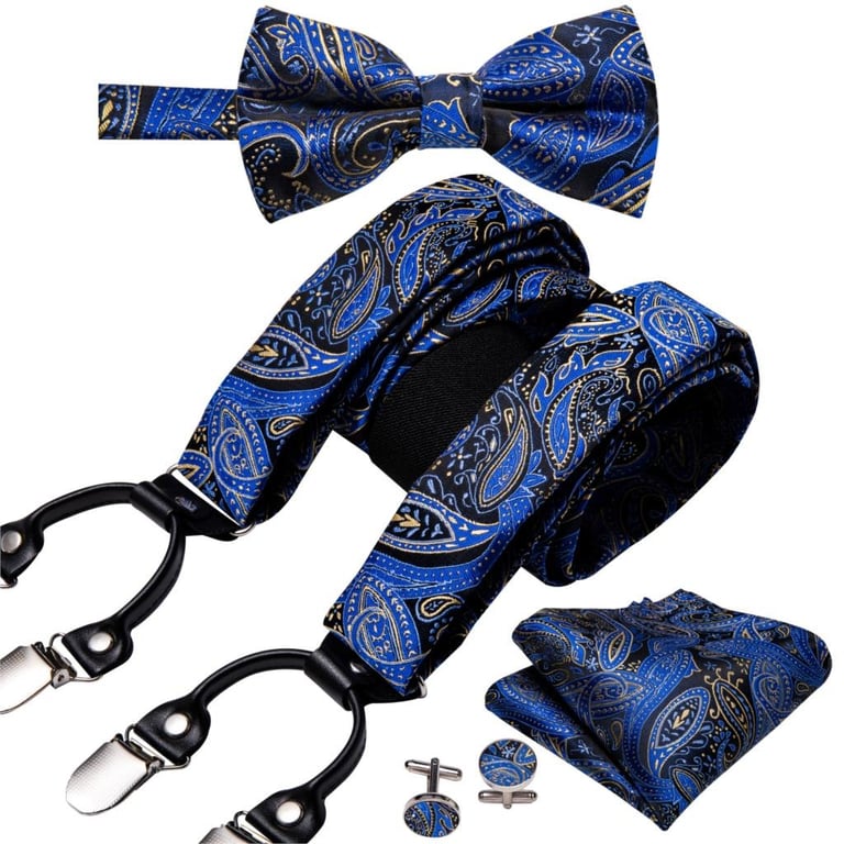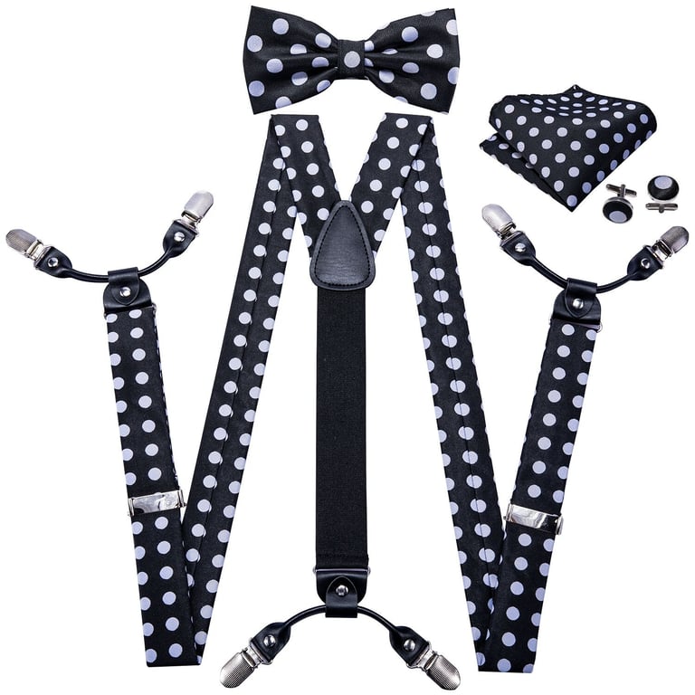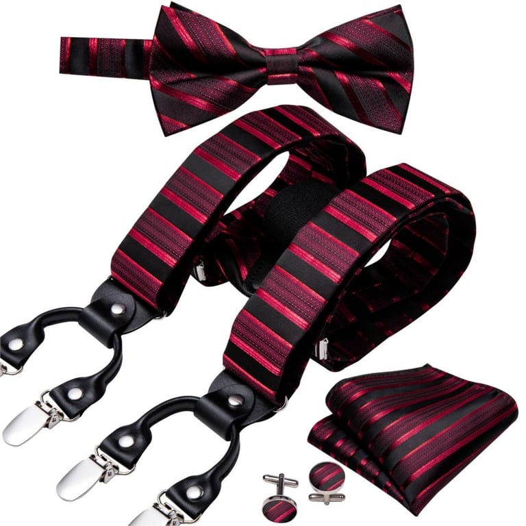 Package contents: 1x braces, 1x bow tie, 1x pocket square, 2x cufflinks