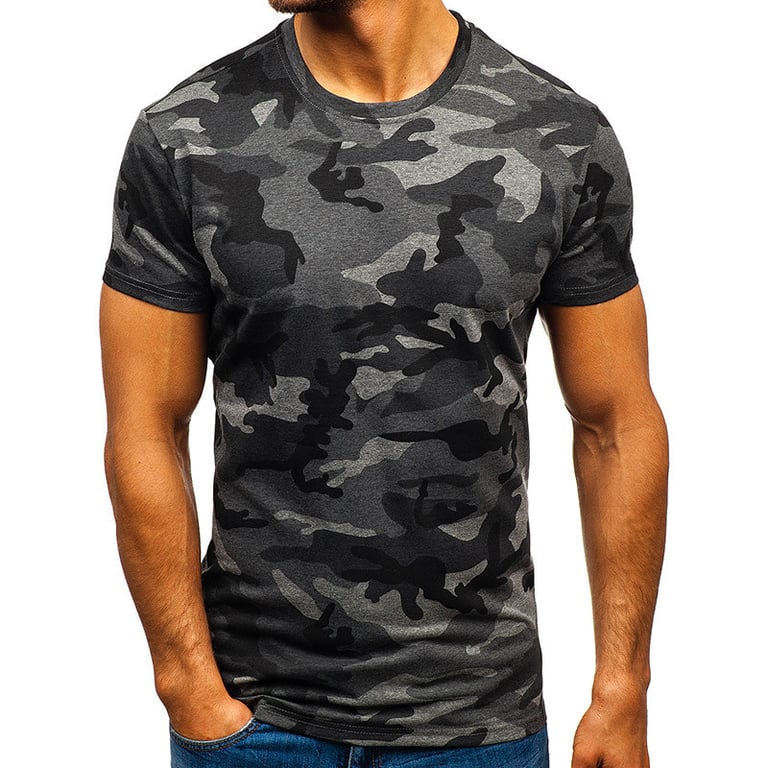 Men's short-sleeve t-shirt with a round neckline. Colourful print with an army pattern. Available in multiple variants. Loose straight fit.
