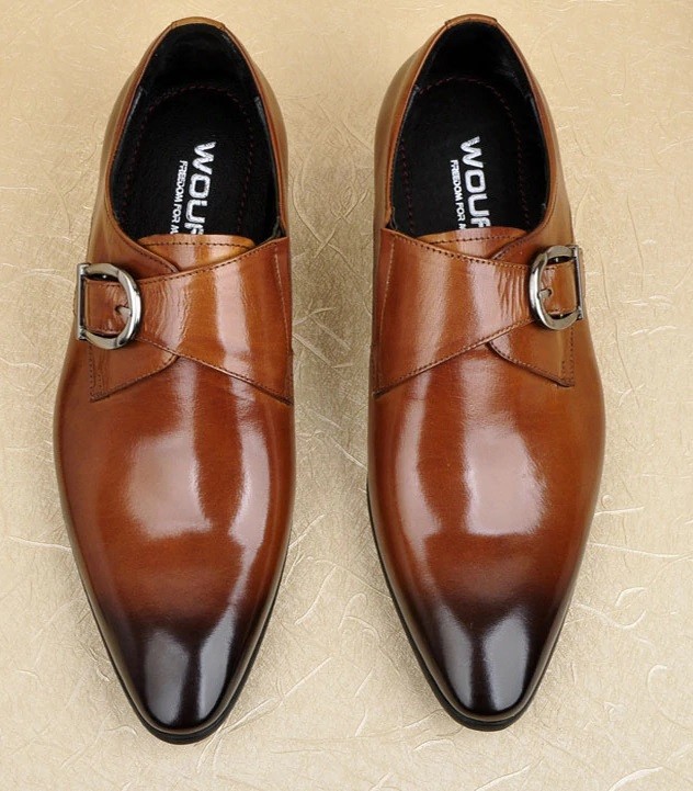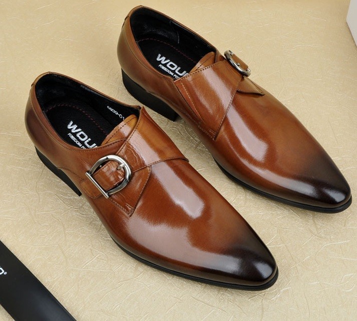 Men's lace-up shoes with a buckle sewn to a pointed toe will be an adornment for every successful man.