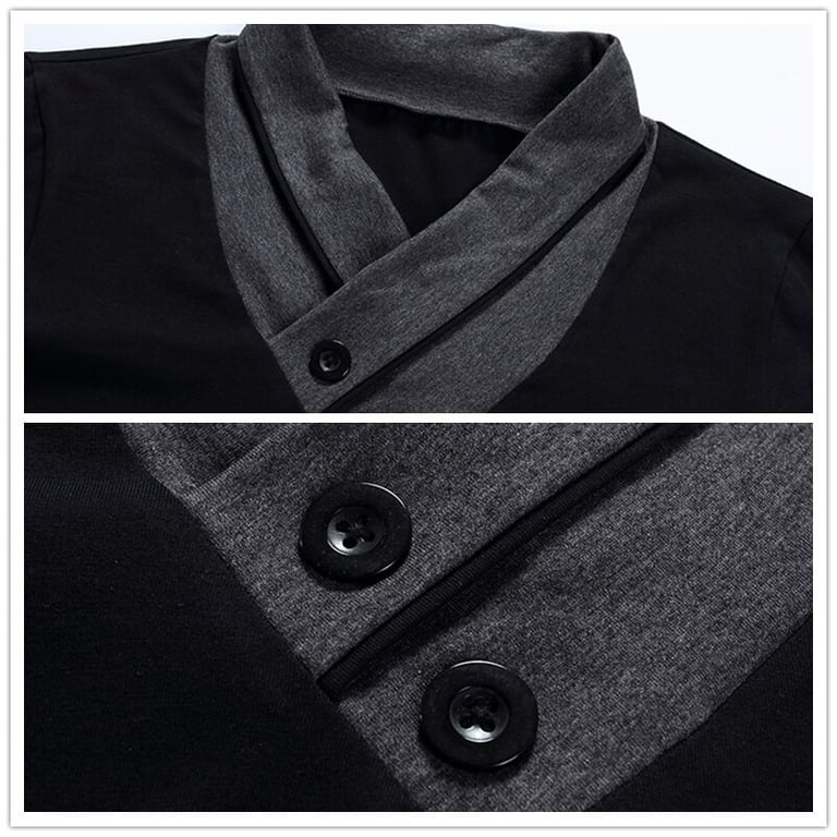 Men's long-sleeve t-shirt. The t-shirt features a V-neck with a collar and decorative buttons. Available in two colour variants.