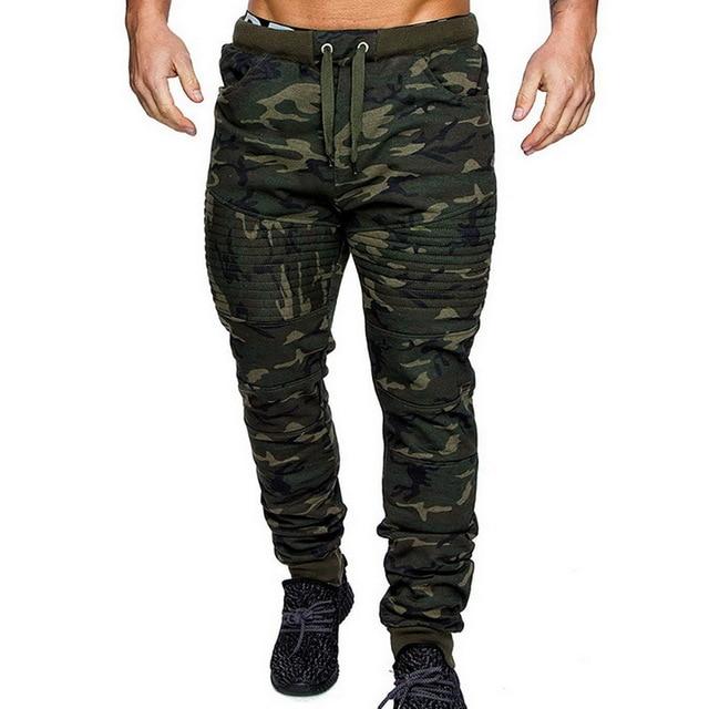 Men's camouflage sweatpants in various colours.
