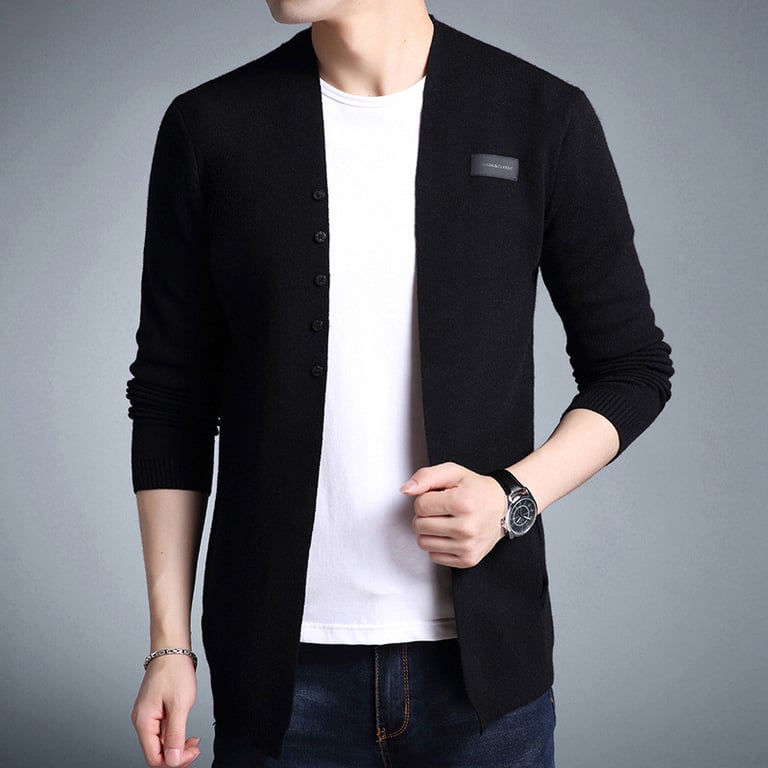 Men's cardigan with button fastening. Fitted cut with a collar. Logo on the front. Available in multiple colour options.