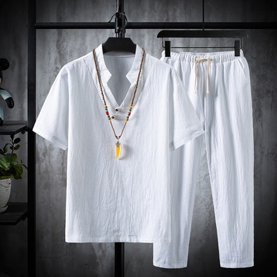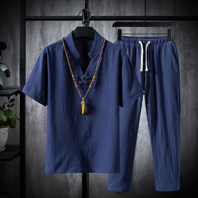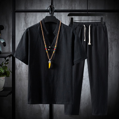 Men's Casual Cotton T-Shirt and Trouser Set