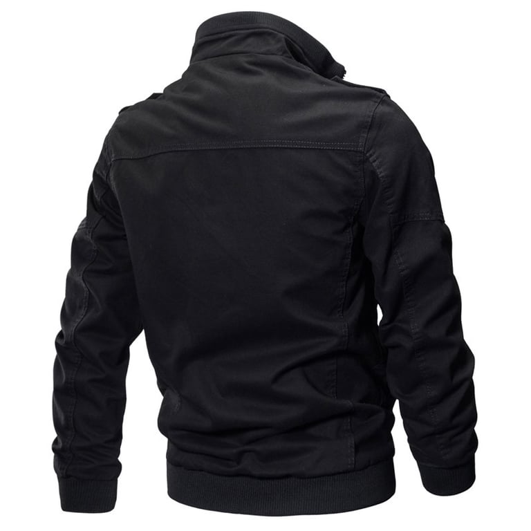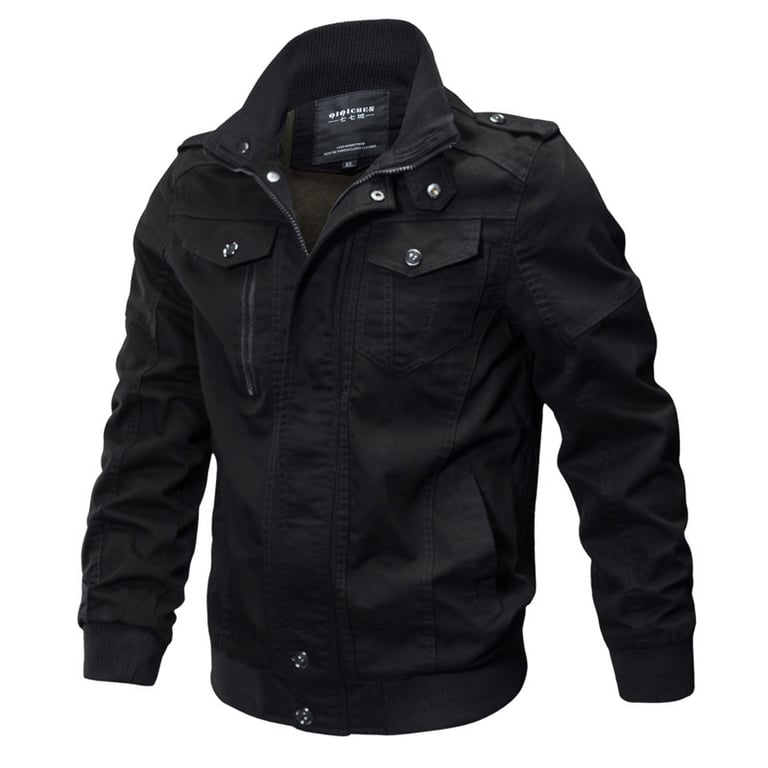 Men's casual jacket for leisure. Stylish solid colour design without a hood and with a collar at the neck. Double-breasted zip and snap fastening. Two side pockets and two chest pockets. Available in several variants and plus size options.
