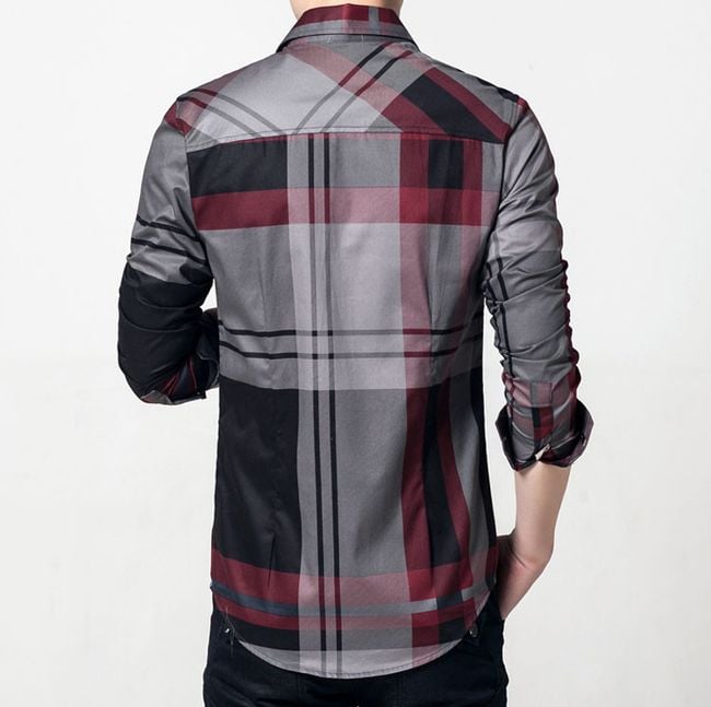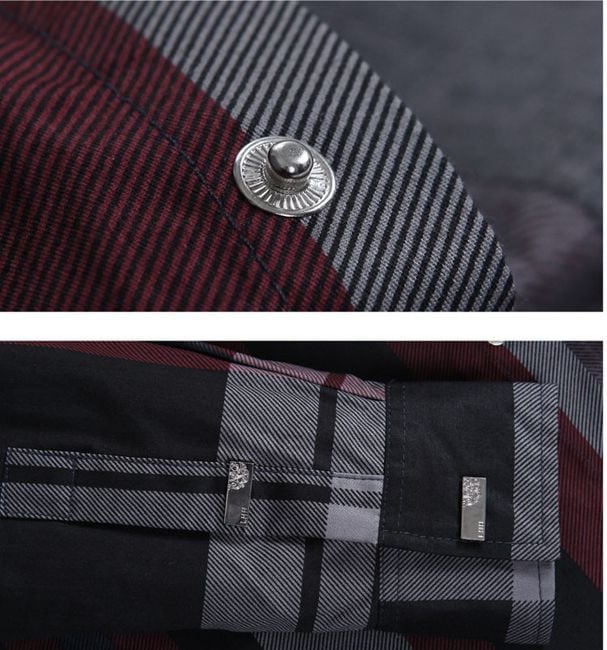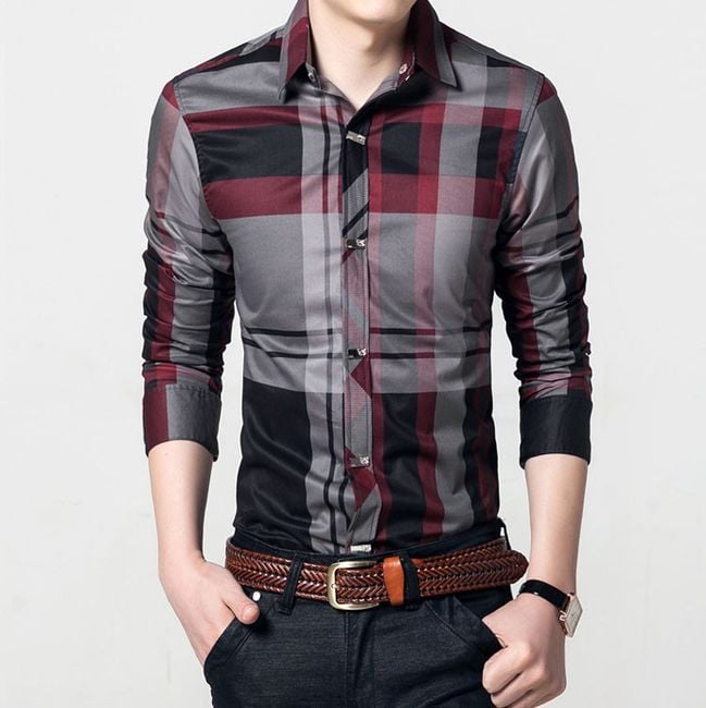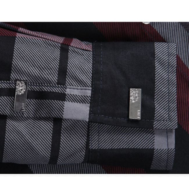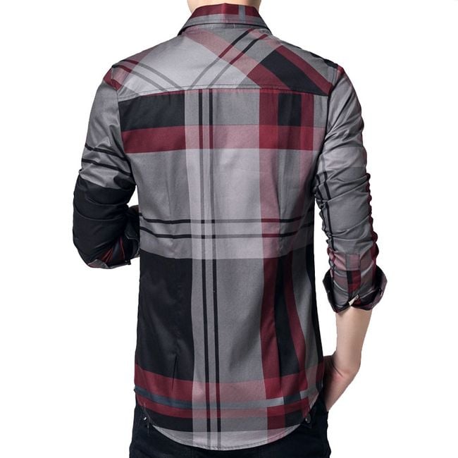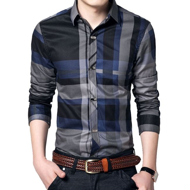 Men's checkered shirt fastens with rectangular buttons. Available in two colour options and several sizes.