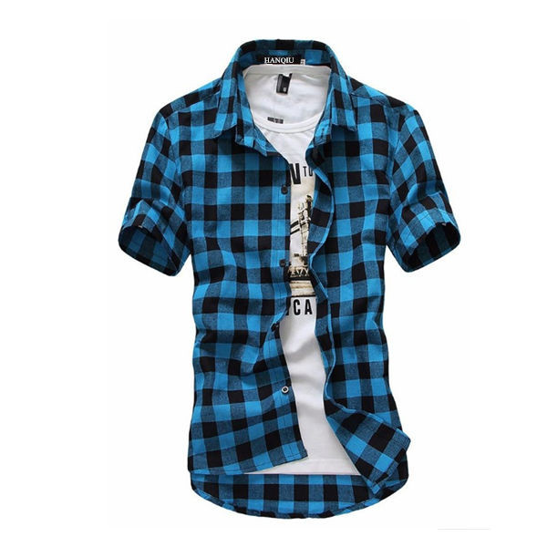 Men's checked short-sleeved shirt.