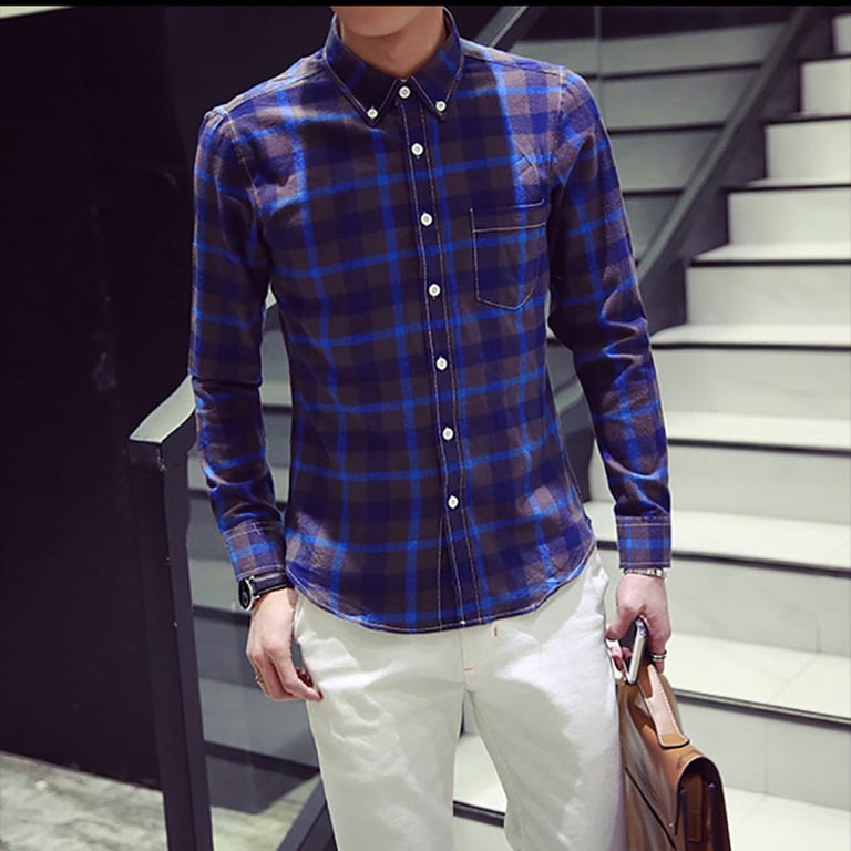 Men's checkered casual shirt with long sleeves. The shirt features a collar and button fastening. Available in several colour options.