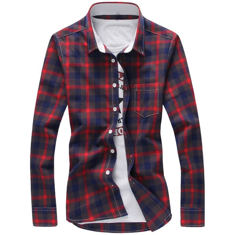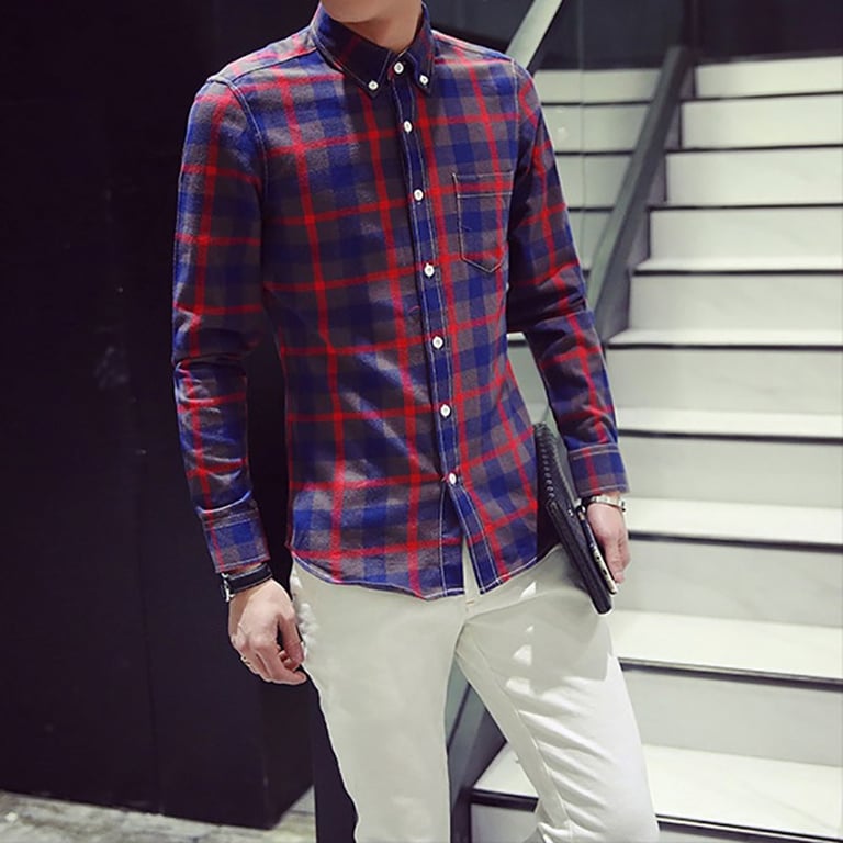 Men's checkered casual shirt with long sleeves. The shirt features a collar and button fastening. Available in several colour options.