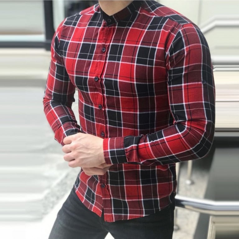 Men's shirt with a checkered pattern. The shirt has long sleeves and a low collar at the neck. Button fastening. Available in multiple colour options.