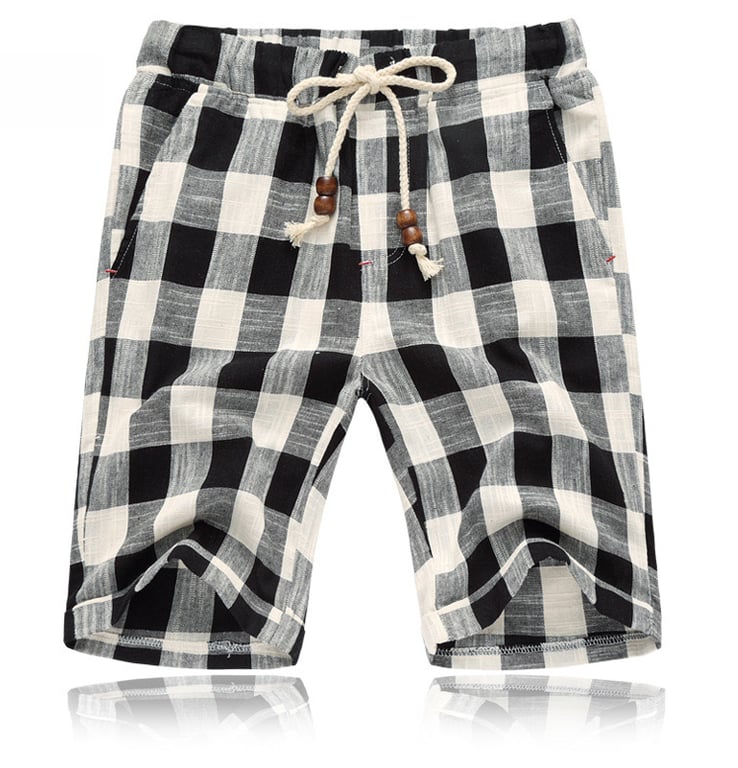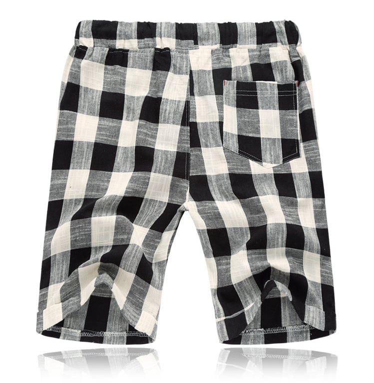 These checked shorts are perfect for the beach by the water.