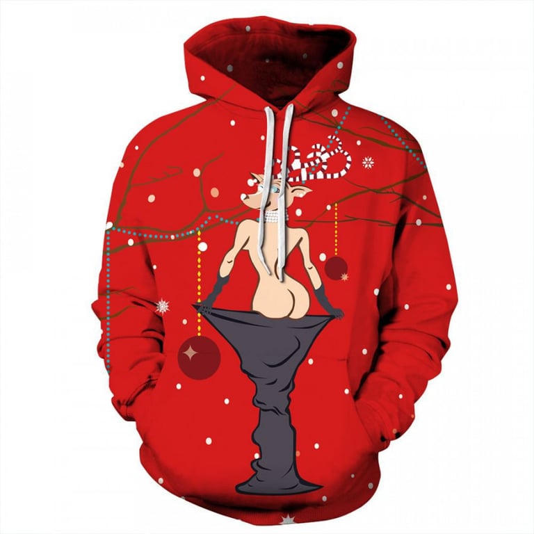 Men's hoodie with a Christmas motif on the front. The hoodie is pull-over style and has a loose fit. Available in various design options.