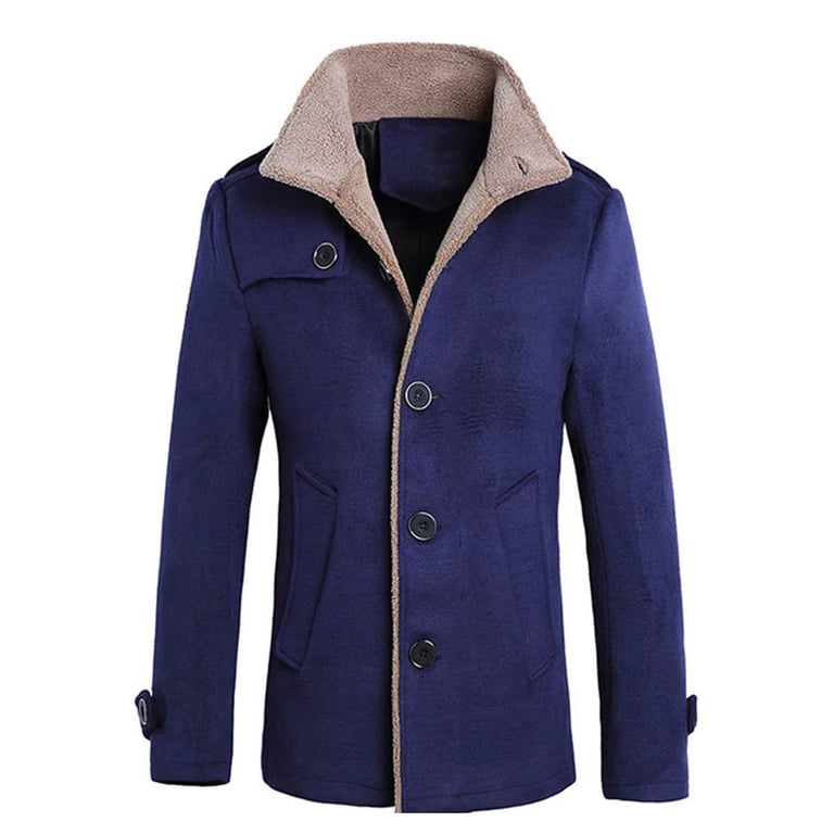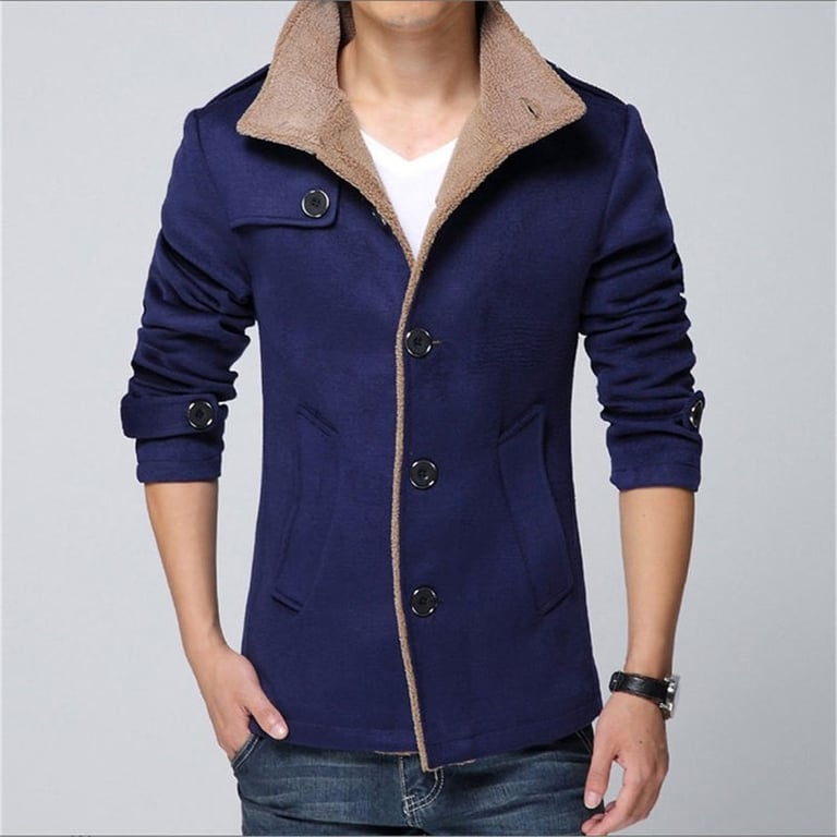 Men's lightweight coat with a high collar. Longer straight cut with button fastening. Two side pockets. Fur lining inside. Available in several colours.