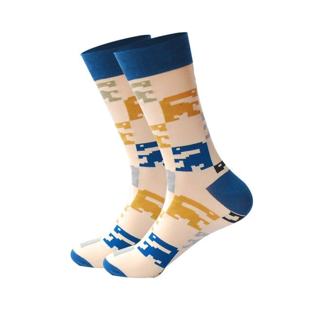 Men's socks with colourful patterns. Size 38-43. They will help to liven up your outfit.