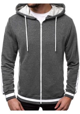 Available in five colours. The hood is complemented with a hood and pockets, along with drawstrings. It fastens with a zip.