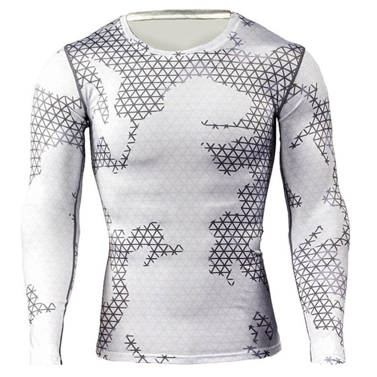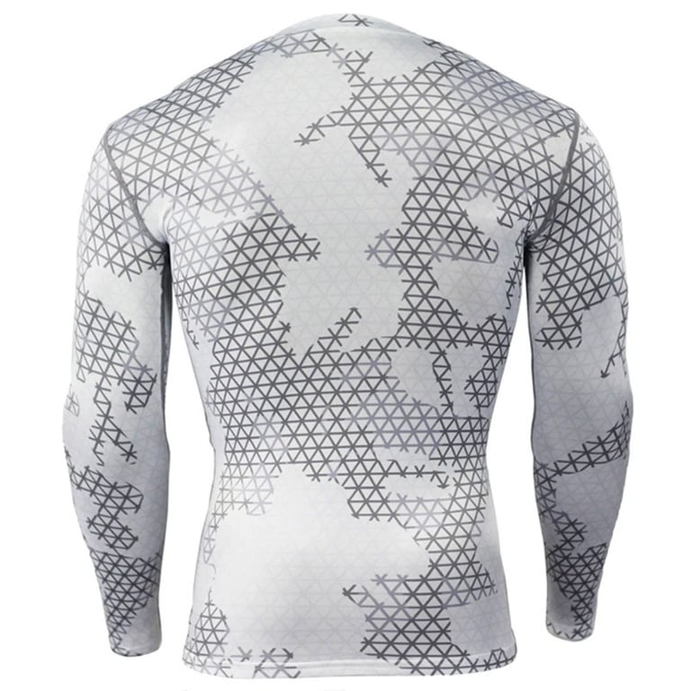 Men's compression t-shirt with camouflage print. Suitable for sports activities and fitness. The t-shirt has a round neckline and long sleeves. Available in several colours.