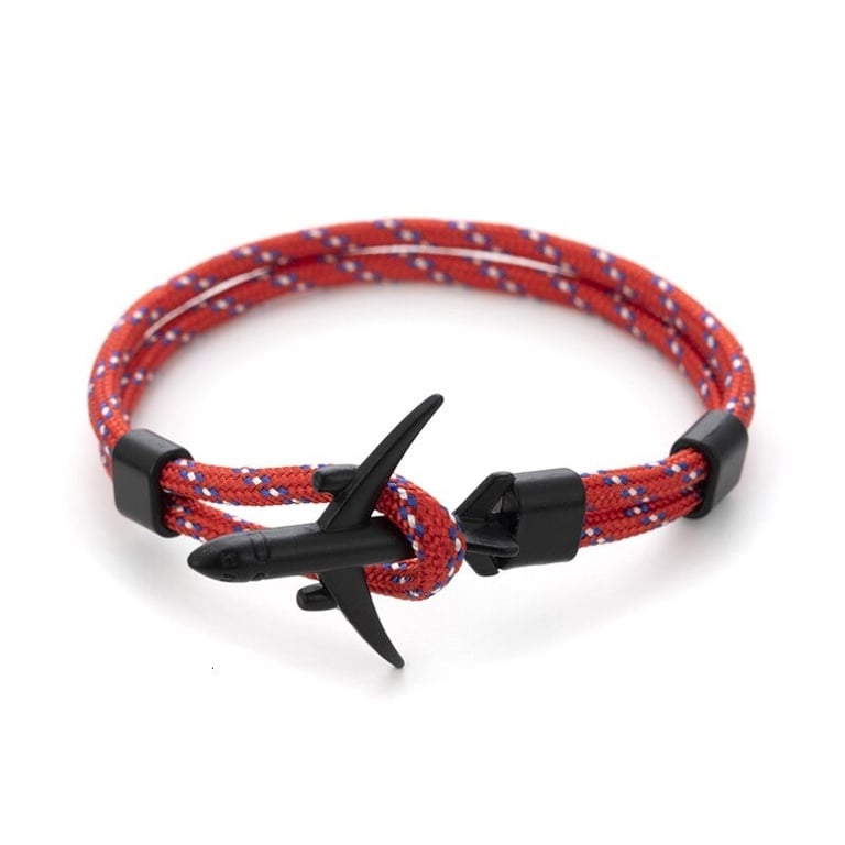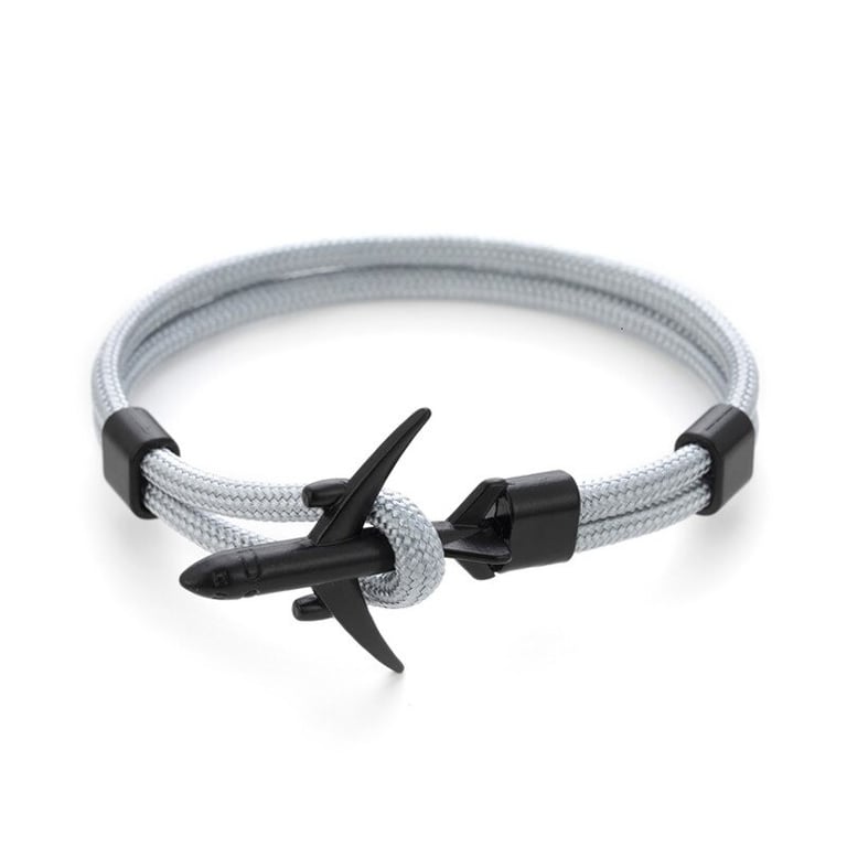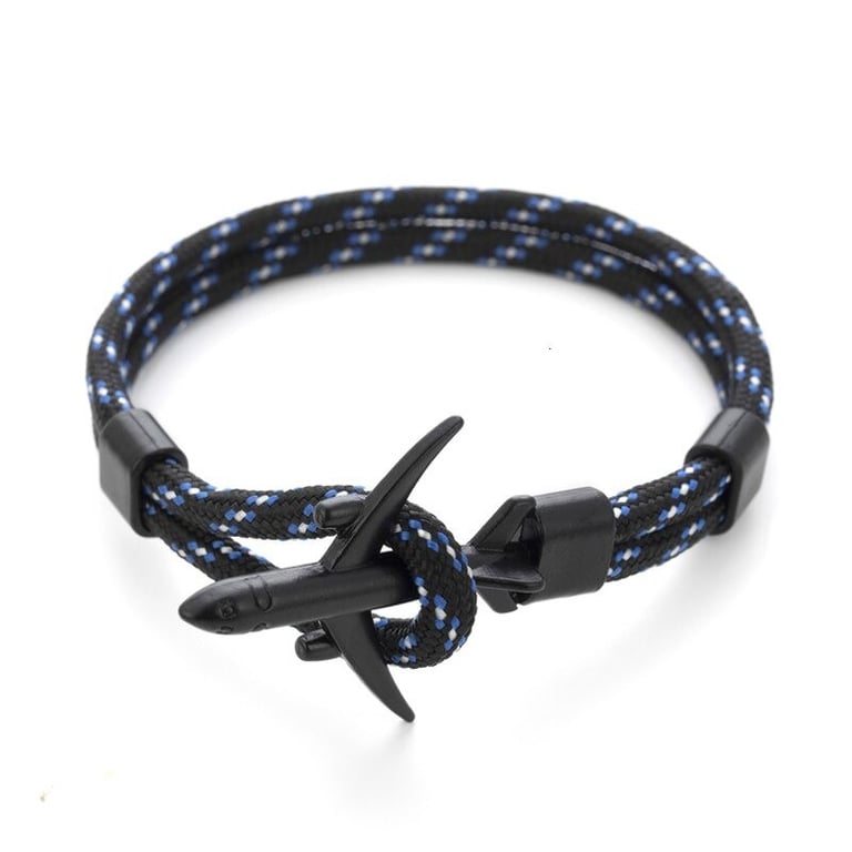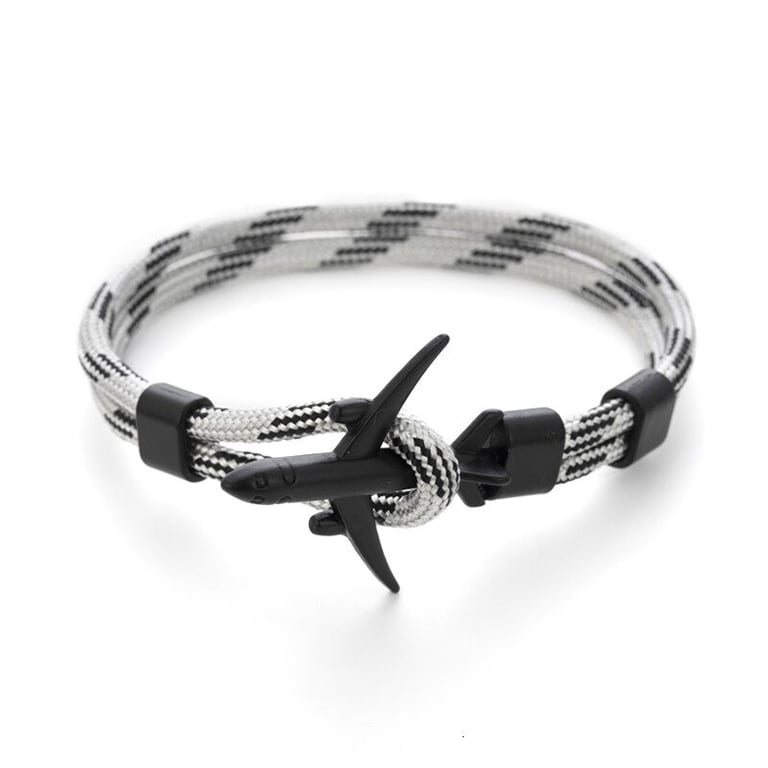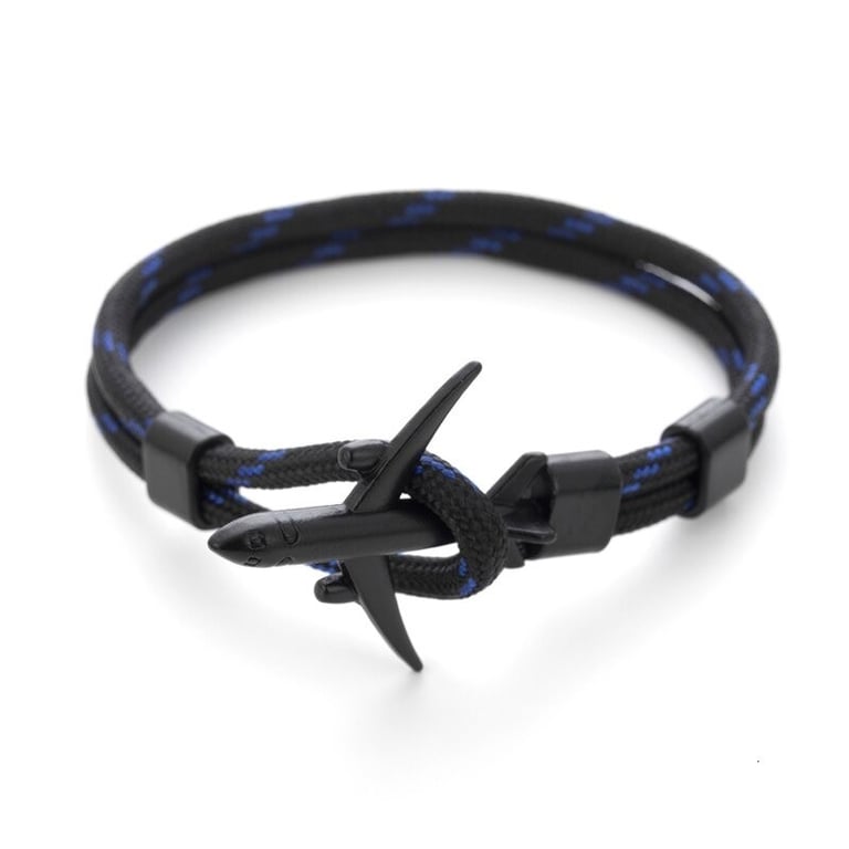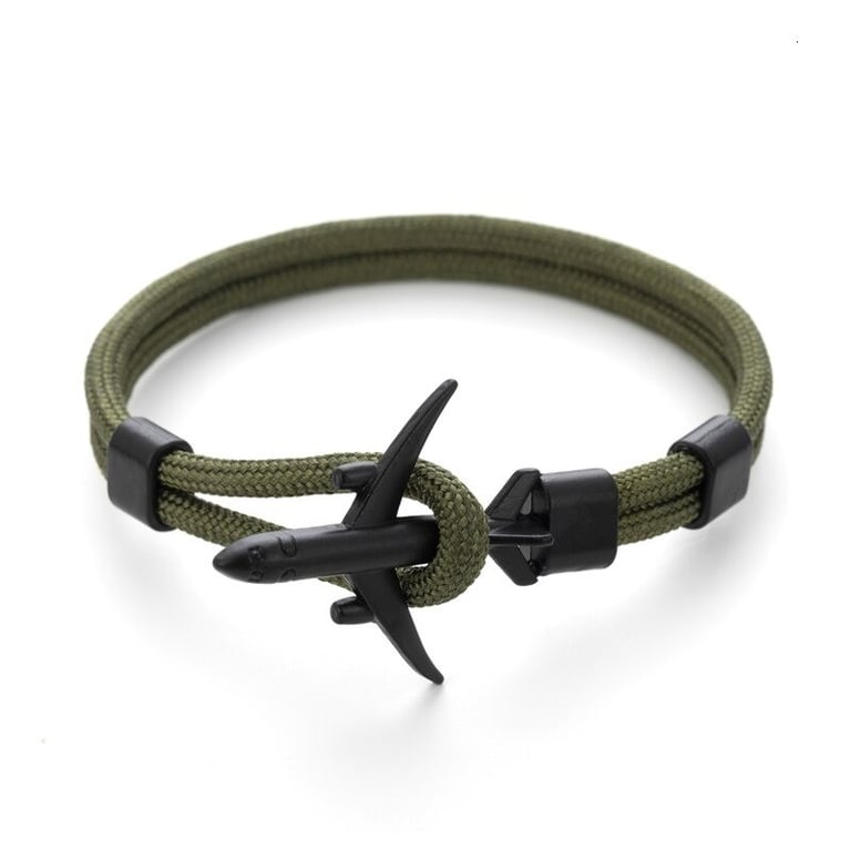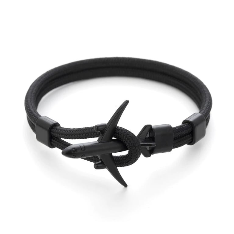 Men's cord bracelet with an airplane