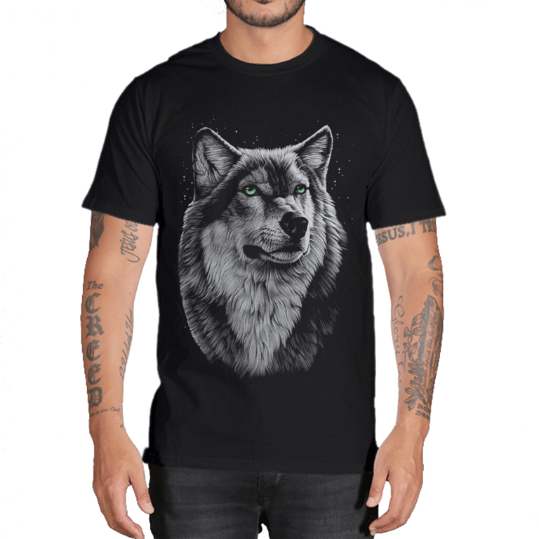 • Tags: men's t-shirt, t-shirt, wolf print, cotton, comfortable, classic cut, short sleeve