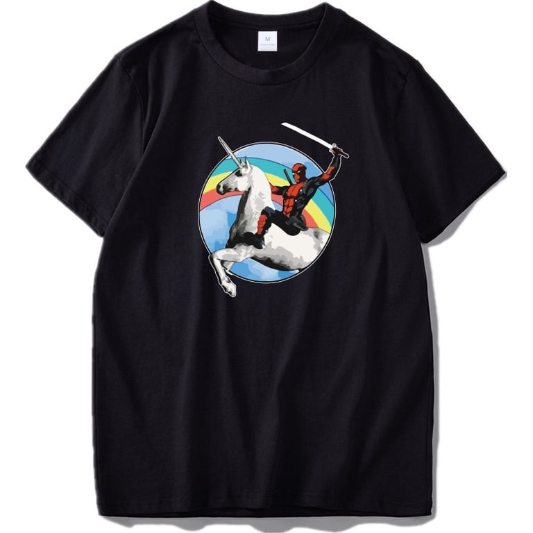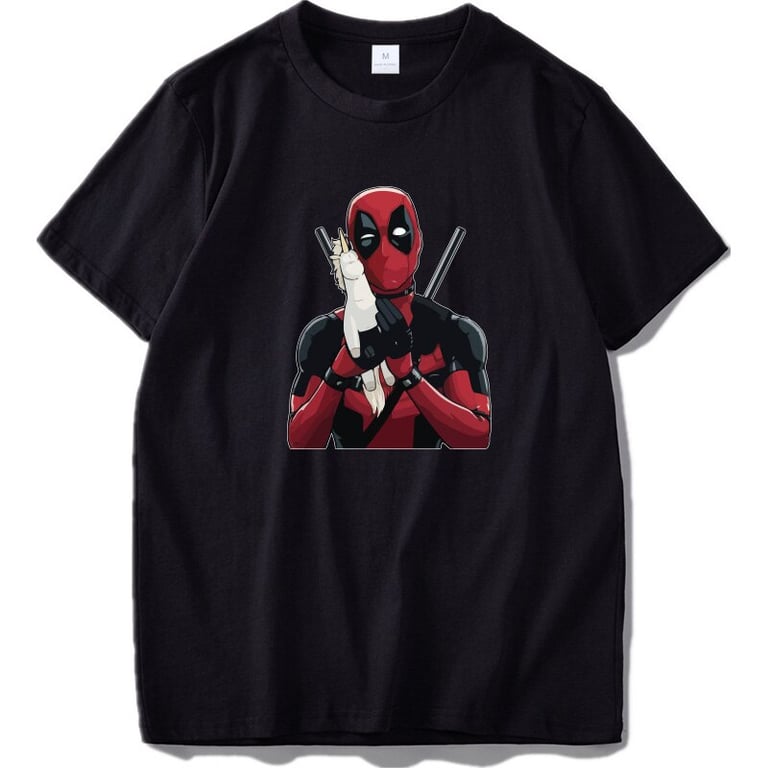 Quality and fun t-shirt featuring a print of Deadpool from the popular Marvel film.