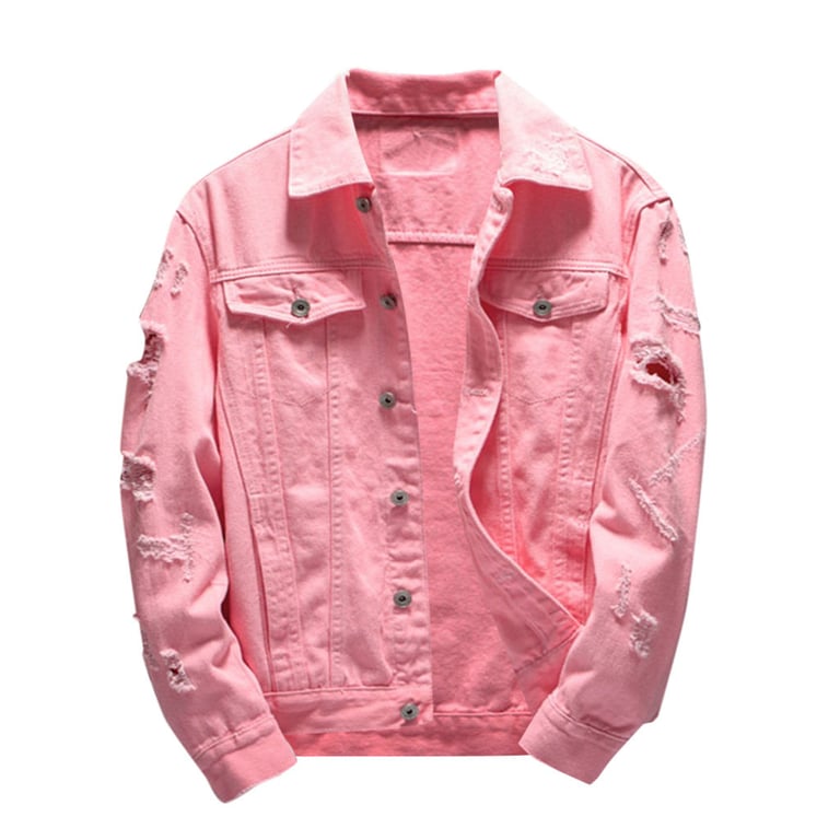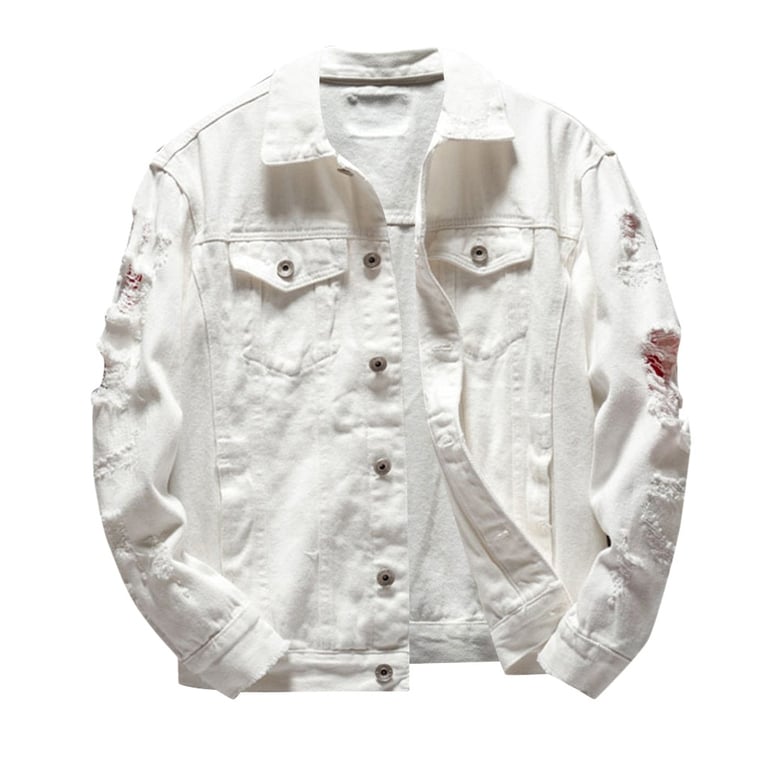 Denim autumn jacket with ripped details, pockets and button fastening.