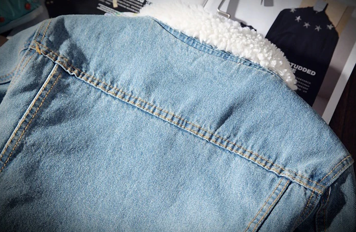 Keep warm on winter days with this beautiful denim jacket, which has a soft lining inside.