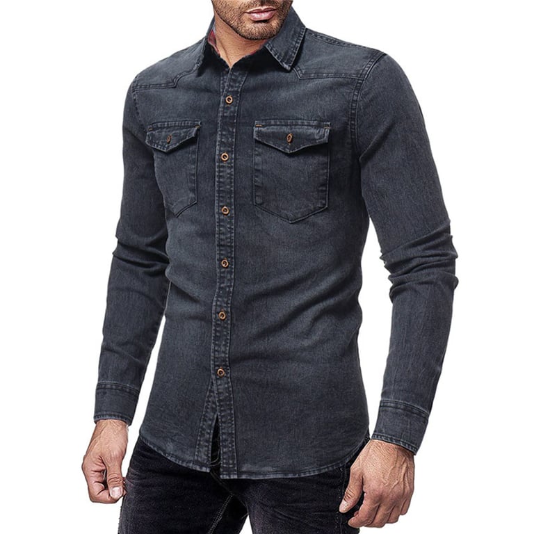 Men's long-sleeve denim shirt. The shirt features a collar and button fastening. Two chest pockets. Available in multiple variants.