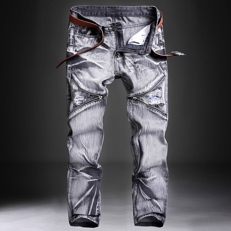 Men's long jeans. The trousers feature two back pockets and two front pockets. These luxurious jeans will attract attention thanks to their features.