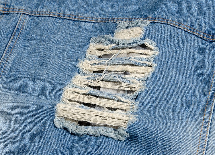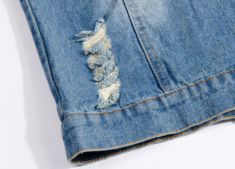 Dress for spring or autumn in this denim vest with a cotton hood featuring a military pattern.