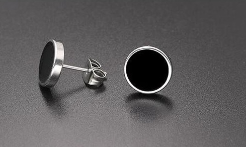 Men's round earrings with a black centre will adorn the ear of any man.