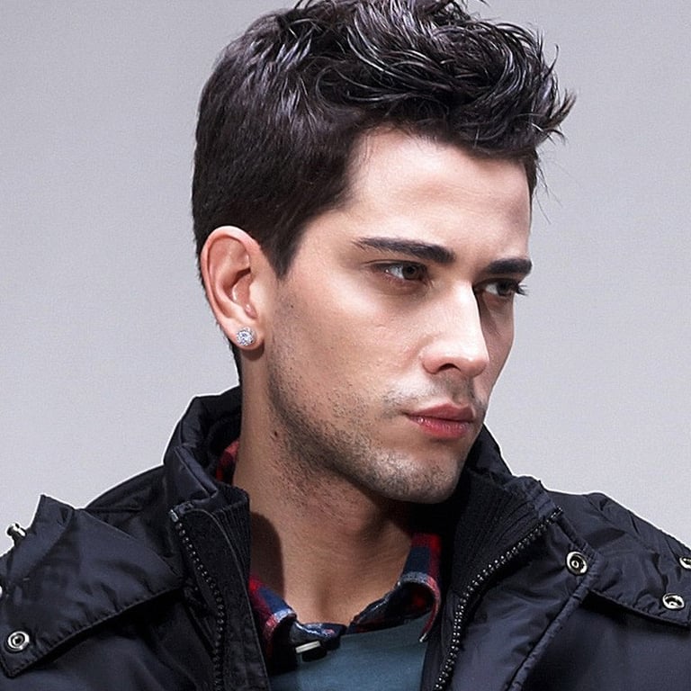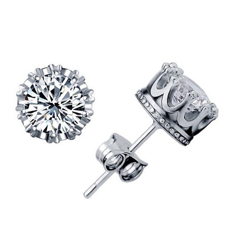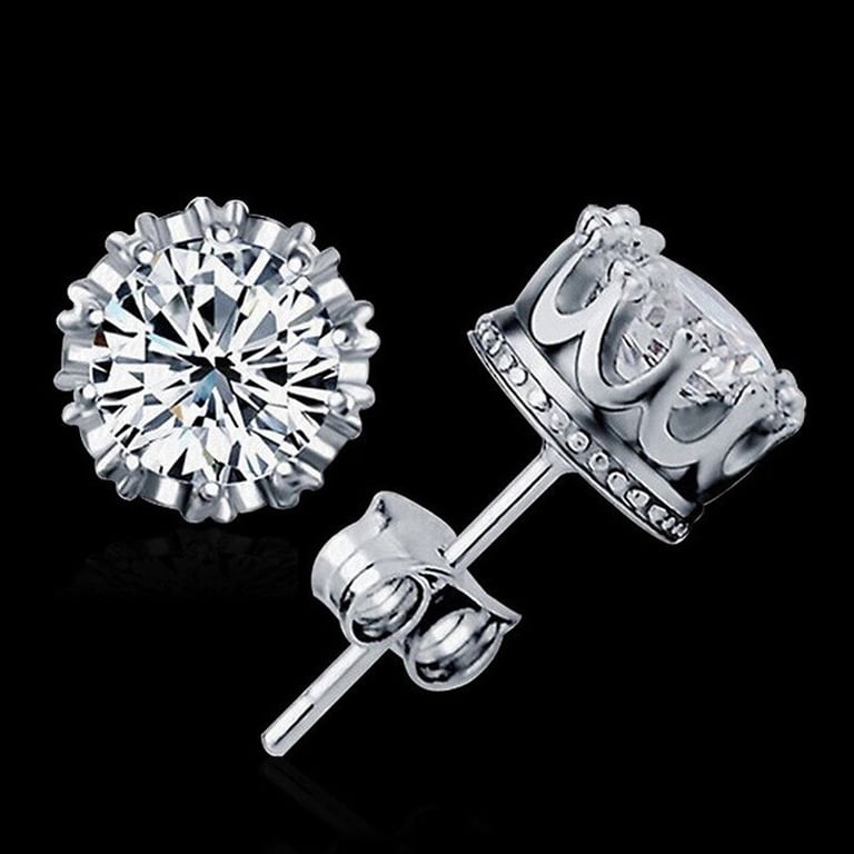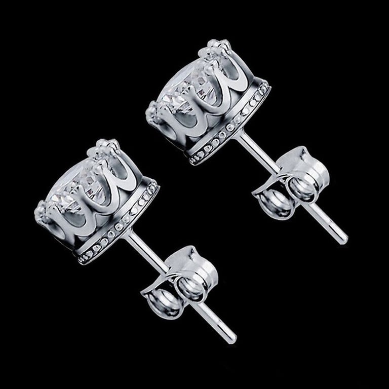 These crown-shaped men's earrings adorned with zircon will embellish the ear of any man.