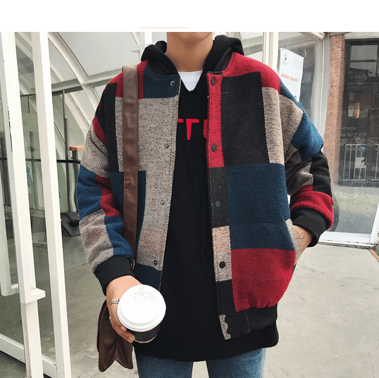 Tags: men's jacket, spring jacket, autumn jacket, checked jacket, baseball jacket