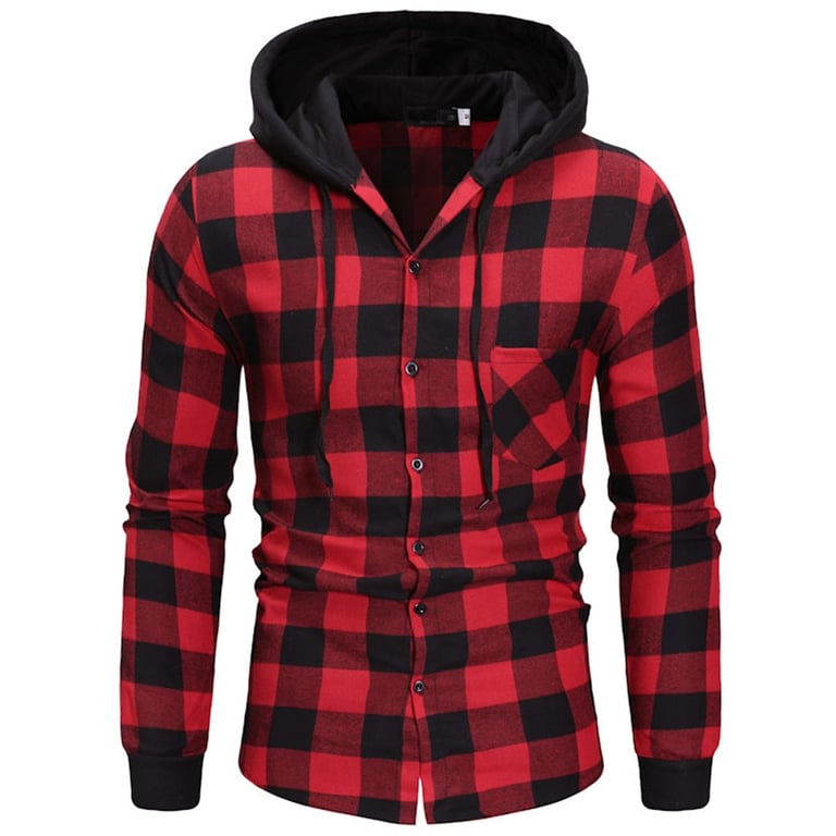 Men's Fashion Checked Hoodie Shirt