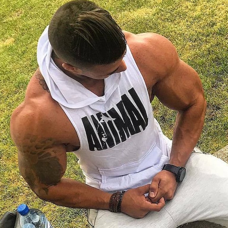 Men's fitness sports tank top with a hood