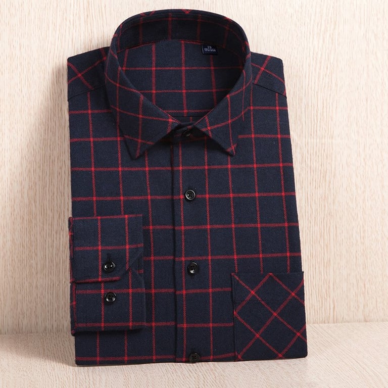 Men's flannel shirt with long sleeves and a collar. The shirt features a button fastening and a checked pattern. Available in various colour options.