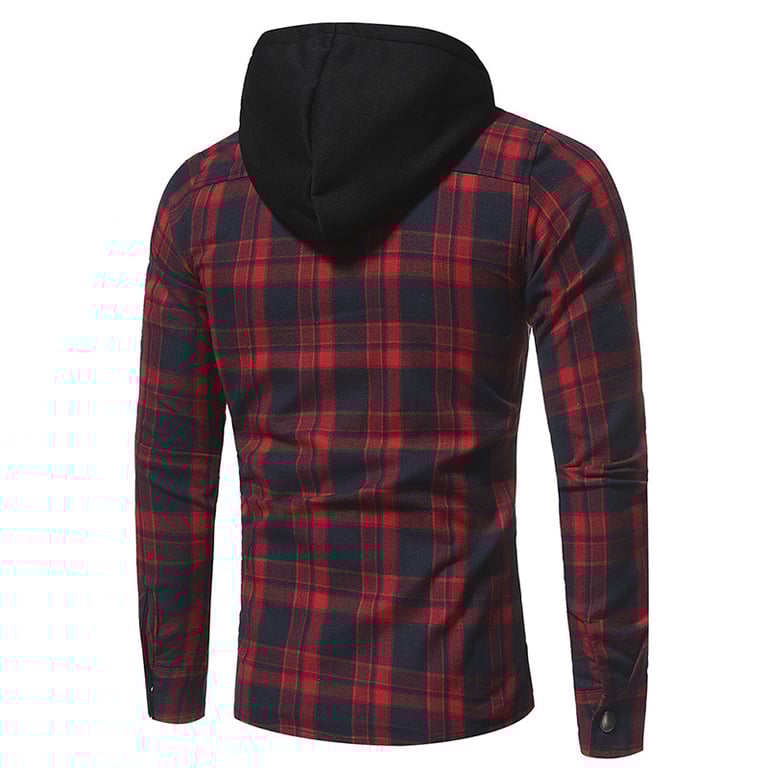 Men's flannel shirt with hood Peter – red