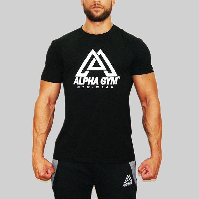 Men's short-sleeved sports t-shirt suitable for the gym. The t-shirt features a print with a slogan on the chest. Available in various options.