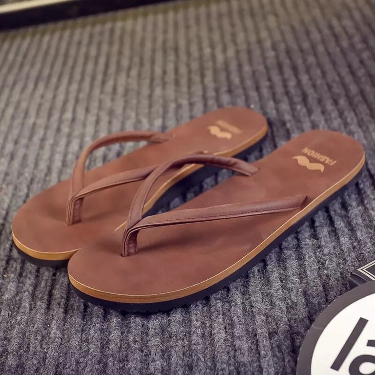 Men's soft flip-flops with a leather look. Flat sole. Available in multiple colour options.