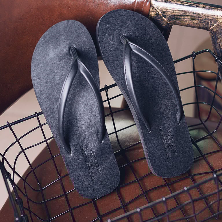 Men's faux leather slippers with a soft flat sole. Available in multiple colour options.