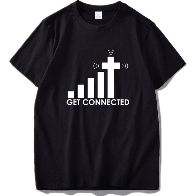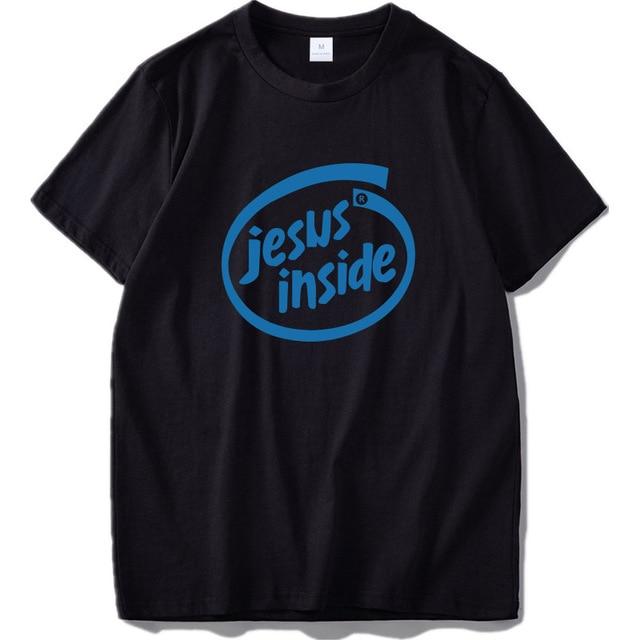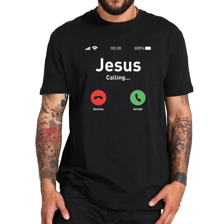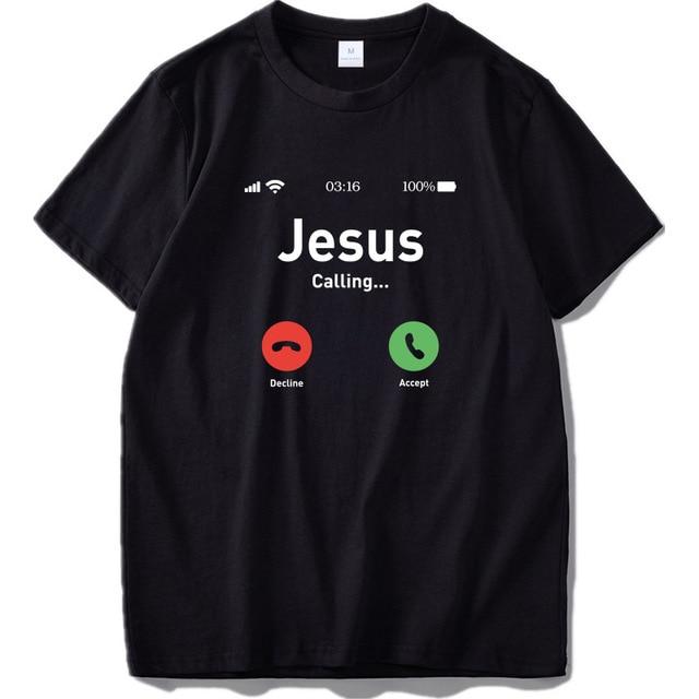 T-shirts featuring Jesus in various designs. Short sleeves with a round neck and comfortable cotton material.