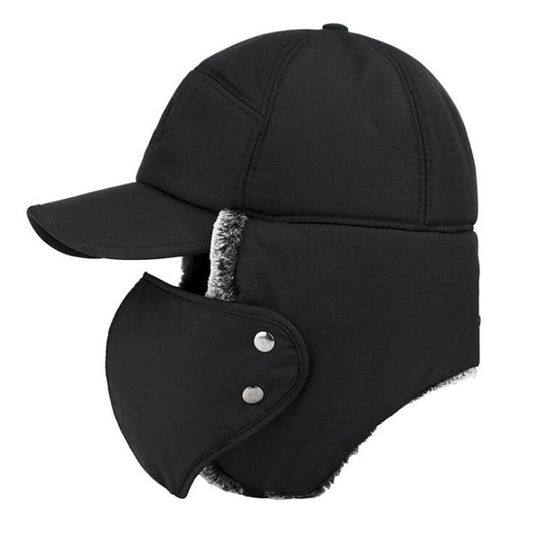 Men's winter fur hat with a visor and mask.