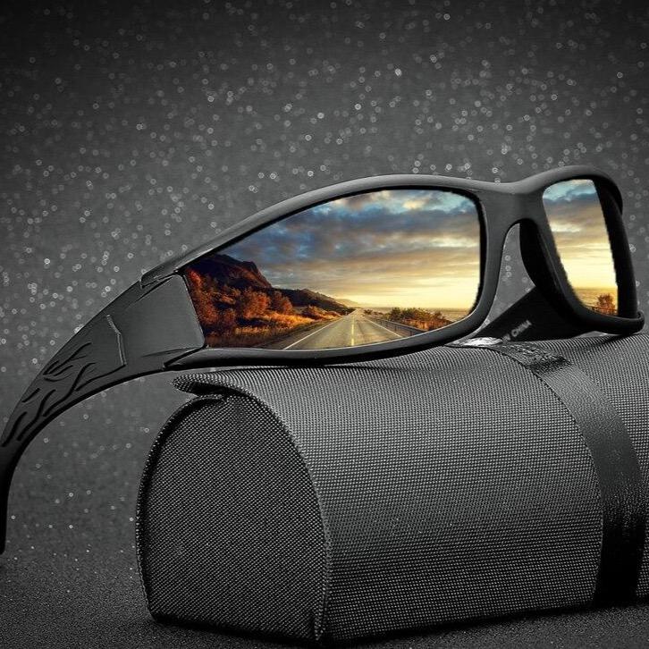 Men's sunglasses suitable for sports or driving. Available in several colours.