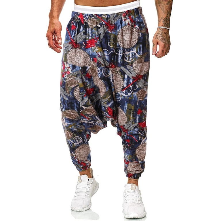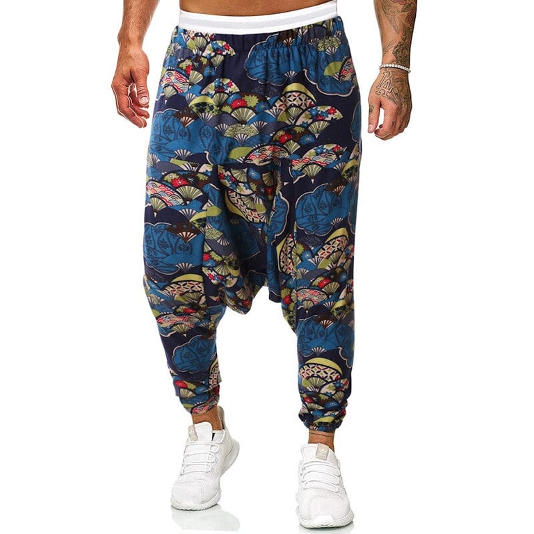 Men's harem trousers with a low crotch in Harajuku colours.