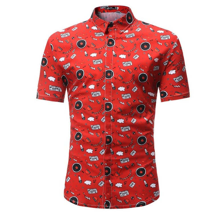 Men's shirt in Hawaiian style. The shirt has short sleeves and a collar neckline. Button fastening. Printed with a colourful pattern. Available in multiple variants.
