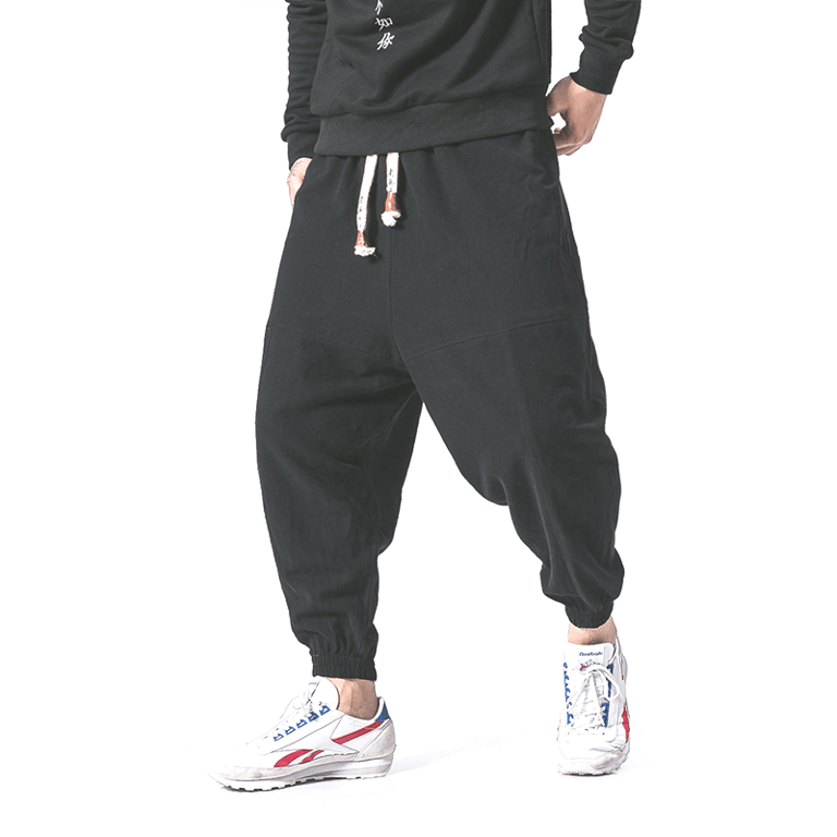 Sweatpants for men with an original and unusual cut. They are wide and set a very original style.