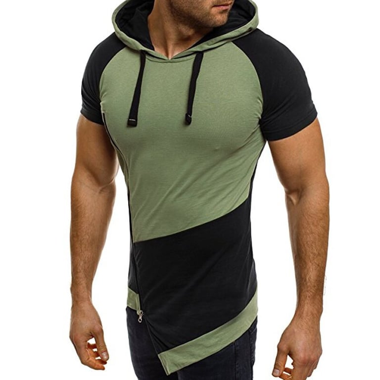 Men's short-sleeve hoodie. Asymmetrical longer cut with a zip fastening. Available in multiple colour options.