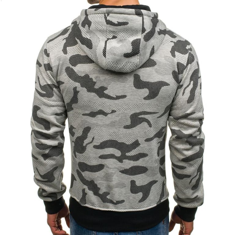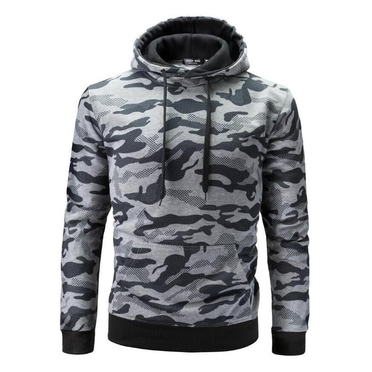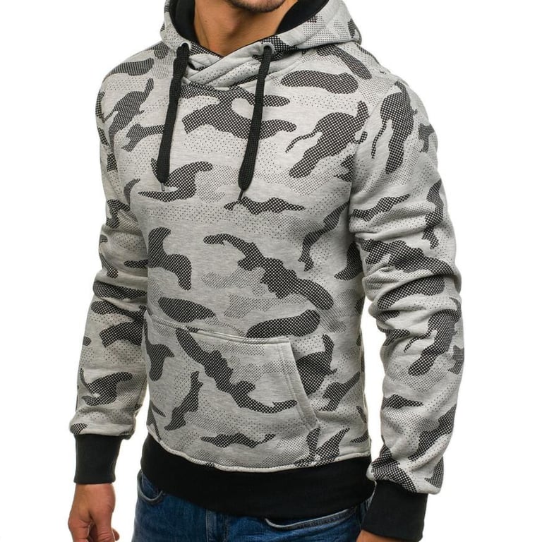 Men's pullover hoodie. Hood with drawstrings for tightening. Kangaroo pocket. Camouflage pattern. Available in two colour variants.