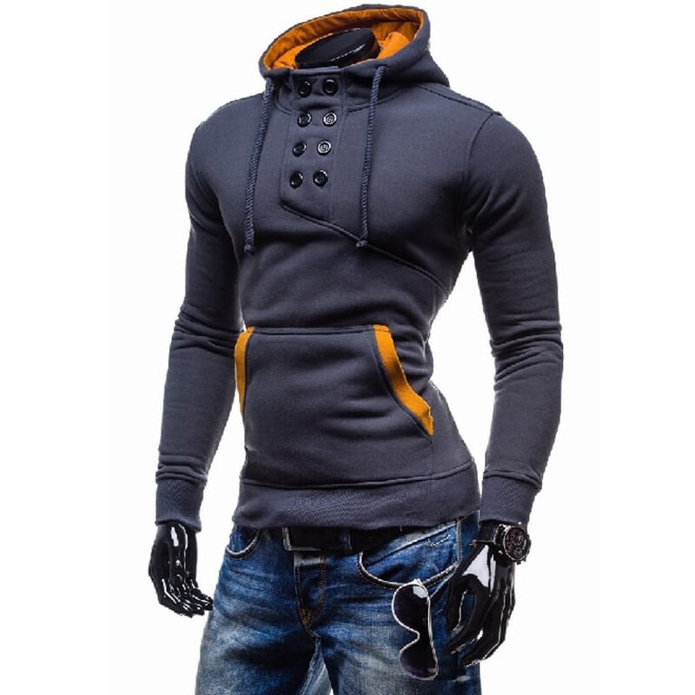 Men's pullover hoodie. With a hood and button fastening. Kangaroo pocket. Elastic waistband. Available in multiple options.