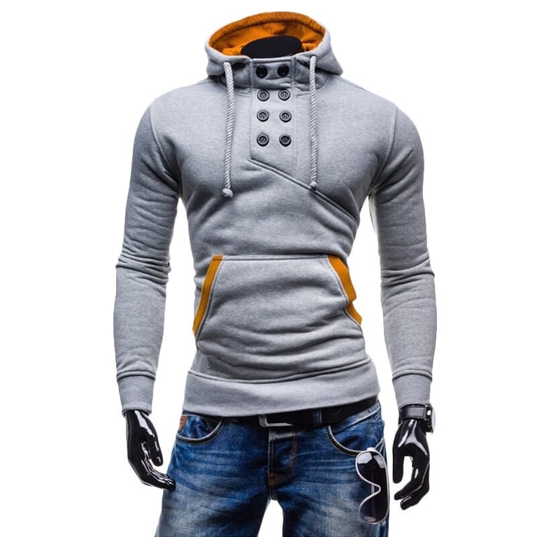 Men's pullover hoodie. With a hood and button fastening. Kangaroo pocket. Elastic waistband. Available in multiple variants.